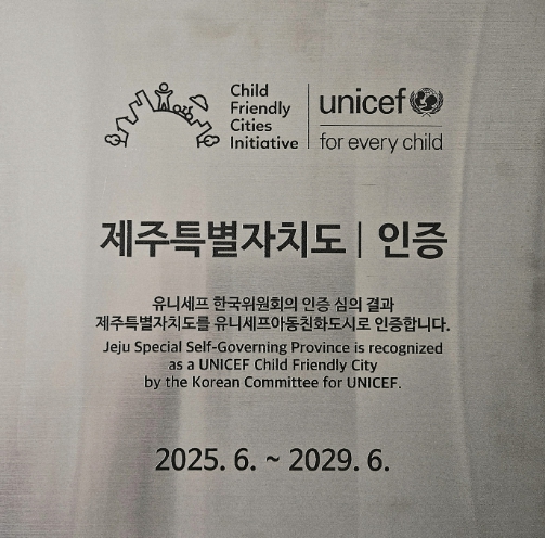 [뉴스노크=김인호 기자] 제주특별자치도가 유니세프 한국위원회로부터 아동친화도시(Child Friendly Cities) 인증을 획득했다. 부산, 대구, 광주, 세종에 이은 다섯 번째 광역지방자치단체이자, 도 단위 광역 지자체로는 전국 최초다.