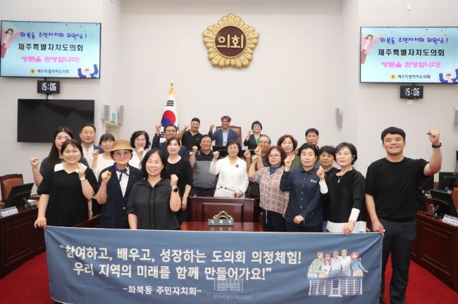 [뉴스노크=김인호 기자] 제주특별자치도의회는 8월 27일 오후 3시, 본회의장에서 화북동 주민자치회(회장 고혁수) 위원 20명이 참석한 가운데 모의의회 의정체험을 개최했다.