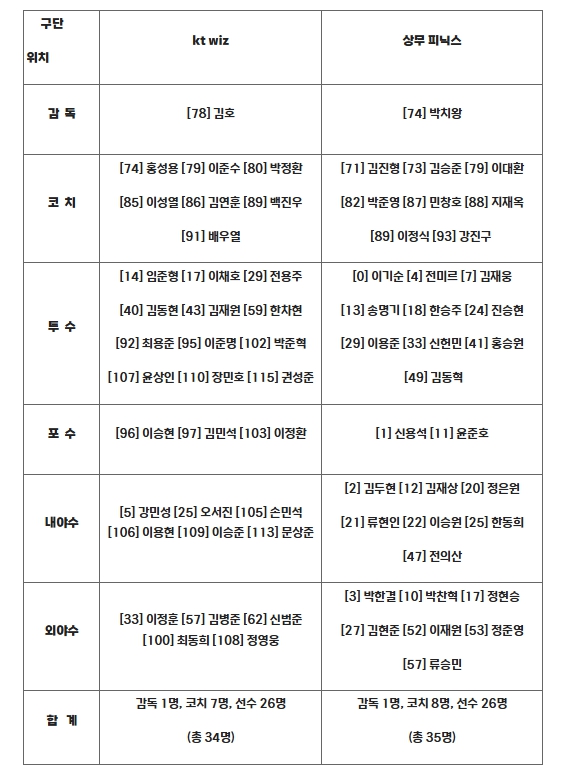 [뉴스노크=김인호 기자] 10월 1일(수) 오후 7시 고척스카이돔에서 개최되는 2025 KBO 퓨처스리그 챔피언결정전에서 맞붙는 KT와 상무의 출장자 명단이 발표됐다.