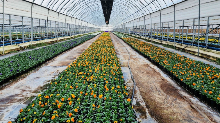 ▲ 농업기술센터 꽃육묘장에서 배부될 봄꽃을 관리하는 모습