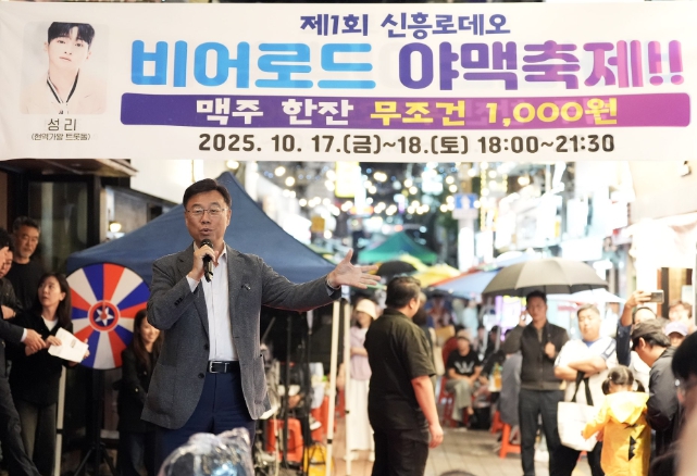 [뉴스노크=김인호 기자] 신상진 성남시장은 17일 저녁 신흥로데오거리 종합시장 먹자골목에서 열린 ‘제1회 신흥로데오 비어로드 야맥축제’ 개막식에 참석해 관계자들을 격려하고 시민들과 소통했다.