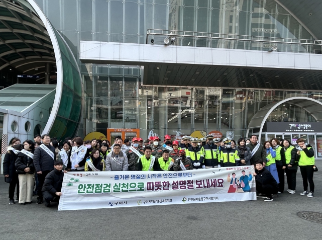 [뉴스노크=김인호 기자] 구미시는 민족 최대 명절인 설을 앞두고 지난 13일 구미역 일원에서 제338차 안전점검의 날을 맞아 '안전한 설 명절 보내기 캠페인'을 개최했다. 이날 행사에는 구미시 재난안전네트워크 회원 150여 명이 참여해 귀성객과 시민을 대상으로 생활 밀착형 안전수칙을 집중 홍보했다.